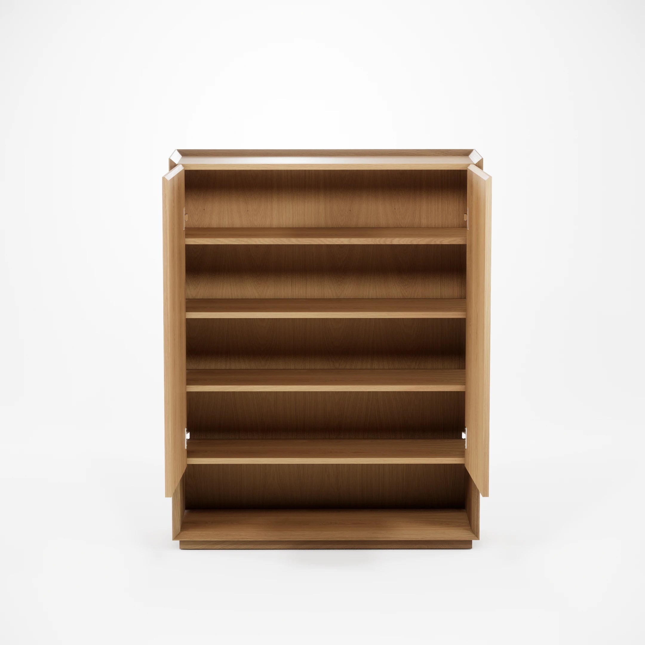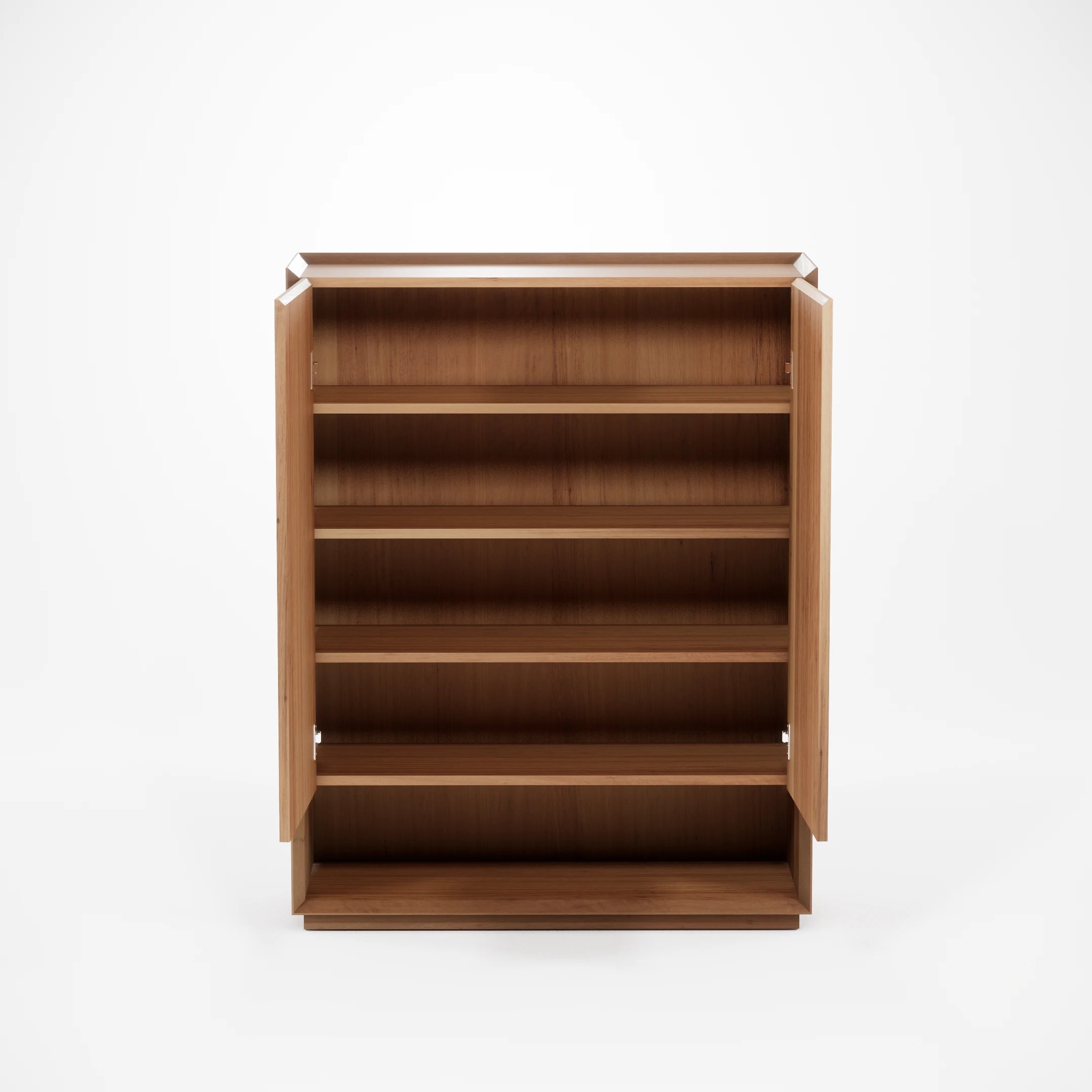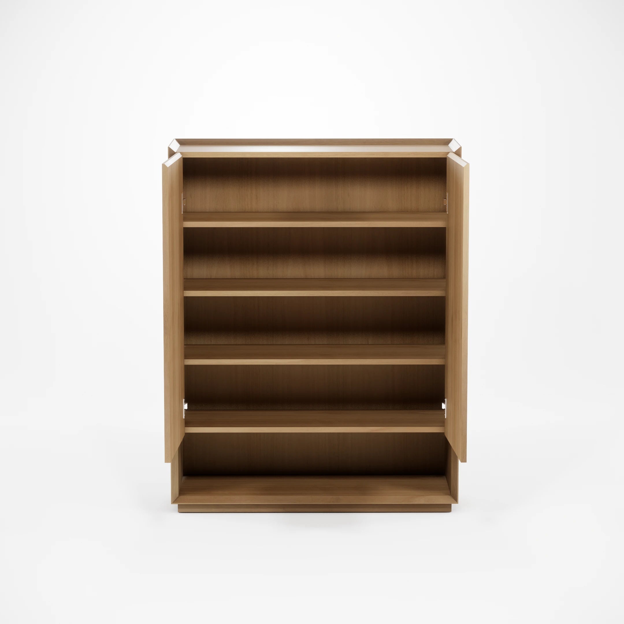 The Lutra Shoe Cabinet is designed to greet you with elegance as you come home. The refined edges of this piece provide a lip that can be a place for everyday items such as your keys. It has a number of generously space shelves internally for you to place your outdoor shoes and a open shelf at the bottom for housing indoor slippers. The enclosed doors provide a way to hide away to clutter of the shoe cabinet and ease the mind as you come into your home.