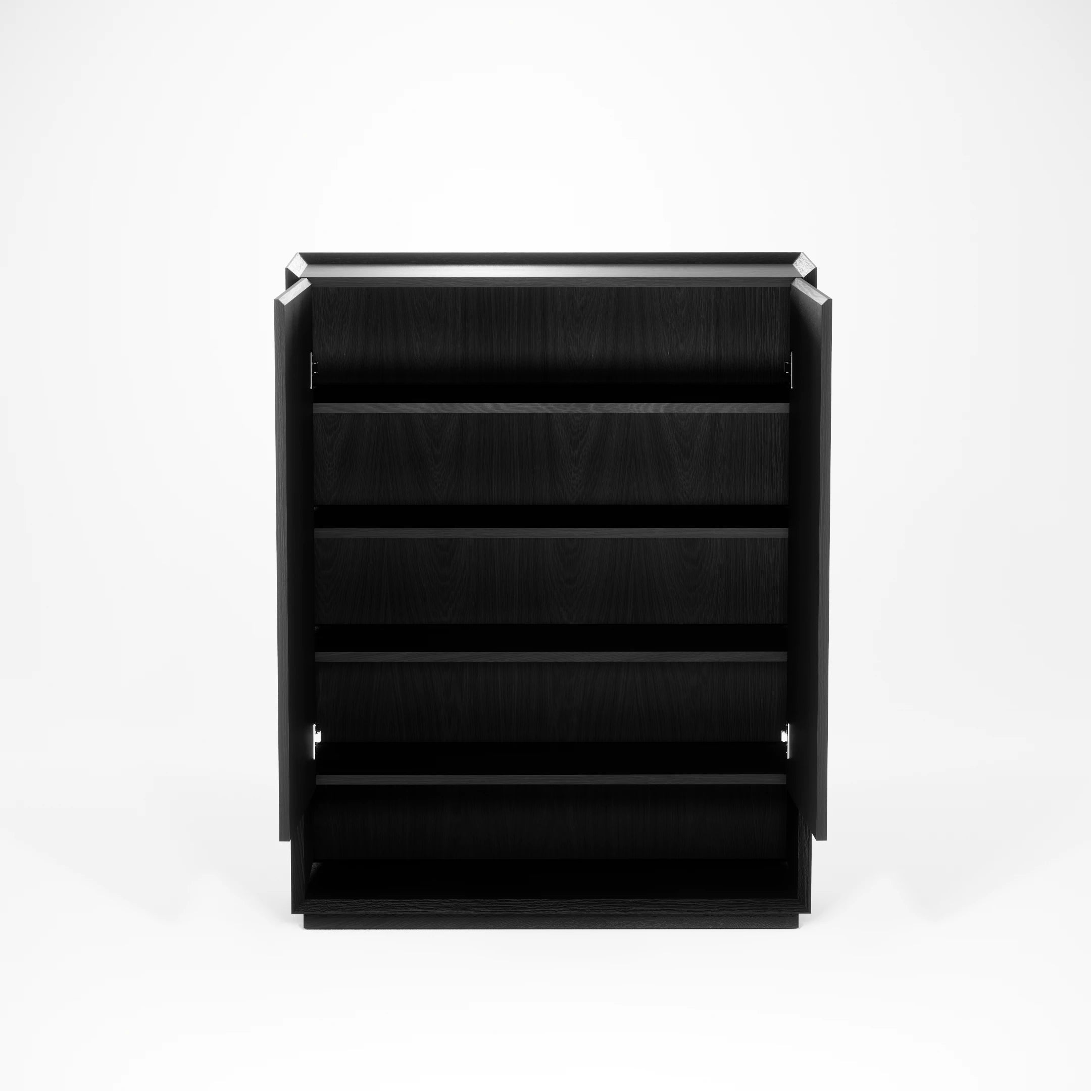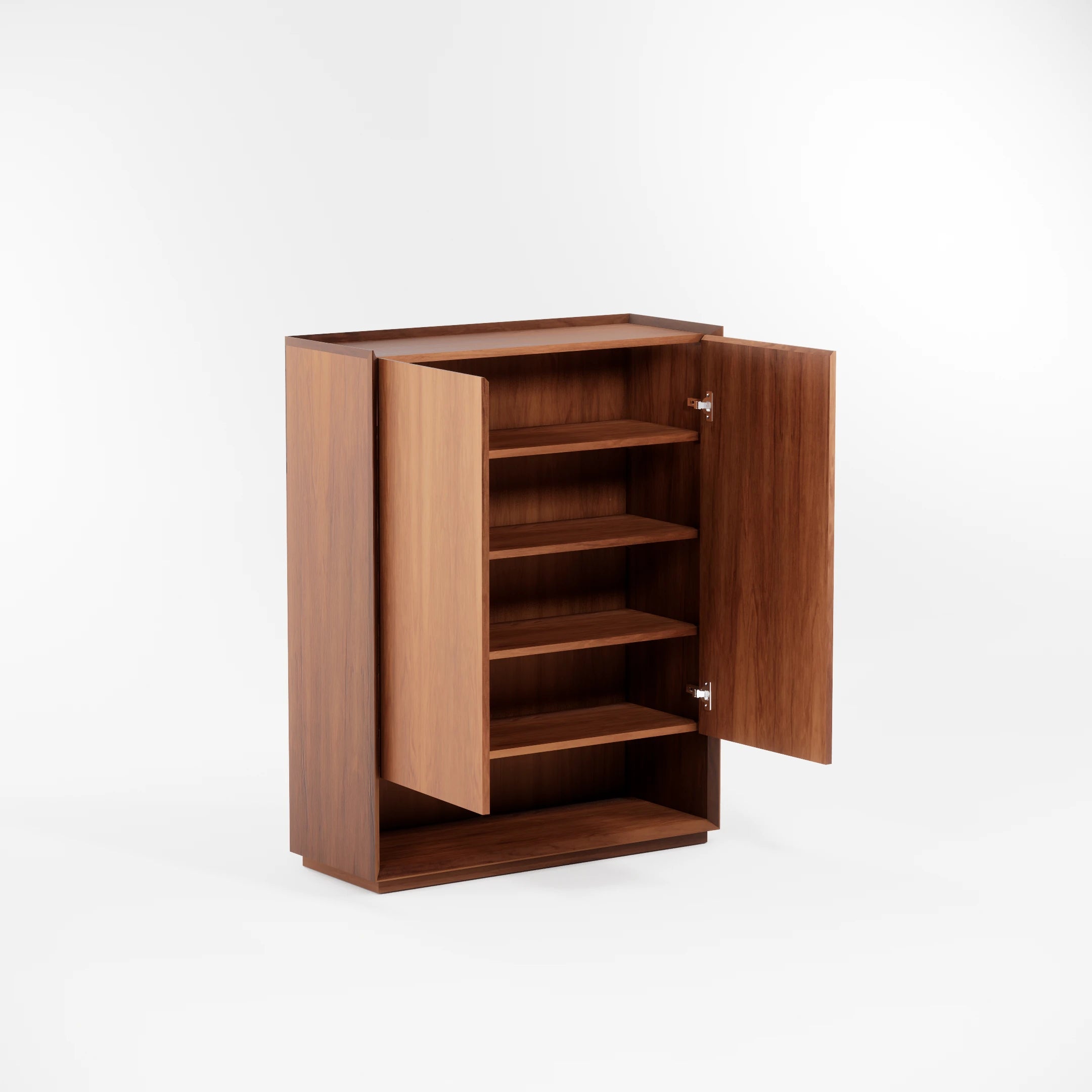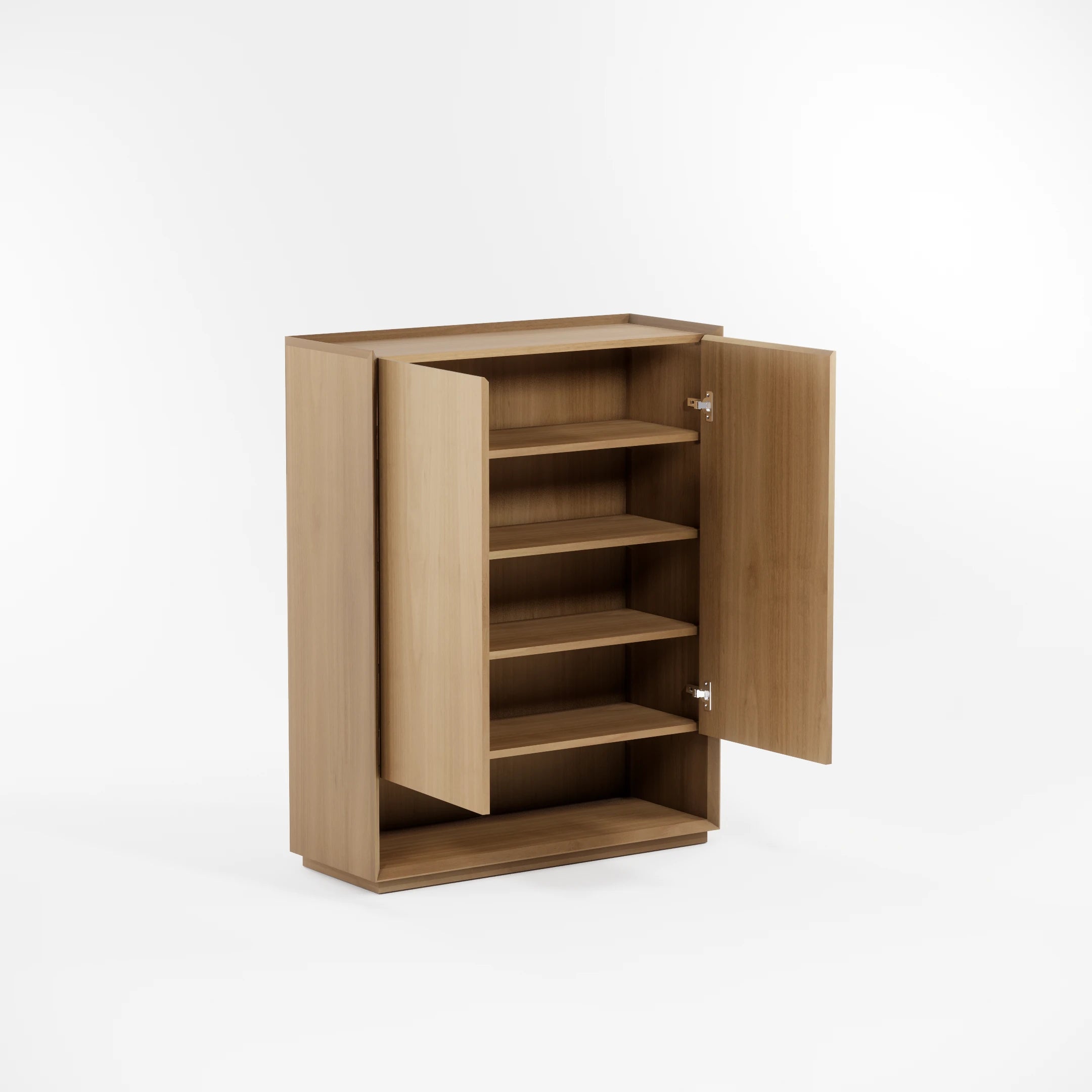 The Lutra Shoe Cabinet is designed to greet you with elegance as you come home. The refined edges of this piece provide a lip that can be a place for everyday items such as your keys. It has a number of generously space shelves internally for you to place your outdoor shoes and a open shelf at the bottom for housing indoor slippers. The enclosed doors provide a way to hide away to clutter of the shoe cabinet and ease the mind as you come into your home.