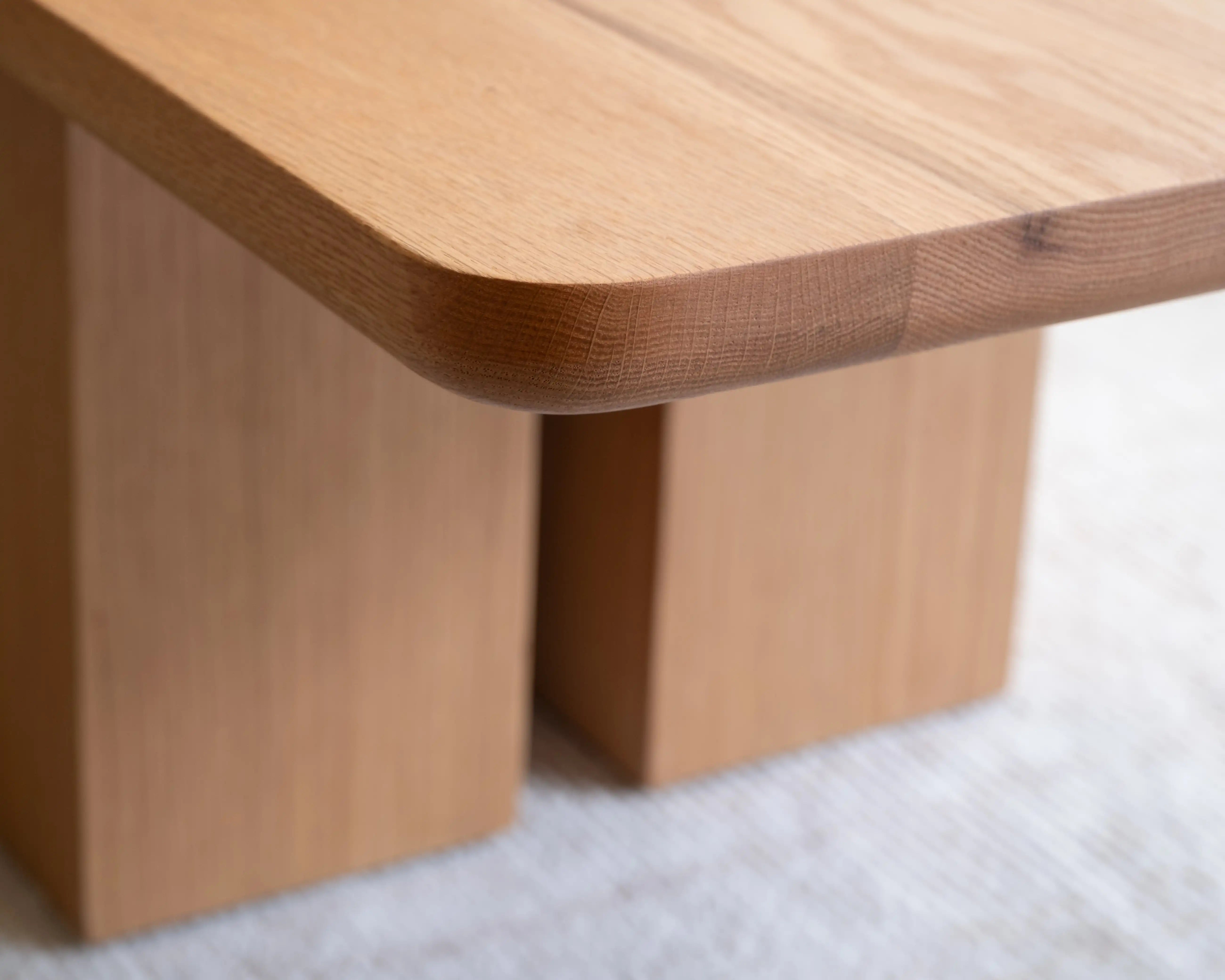 The table's design is further elevated by the soft, rounded details found throughout. The rounded corners of the tabletop invite touch and soften the overall geometric aesthetic, making it approachable and versatile. The underside of the edge profile also features a subtle curve, adding an element of visual interest while ensuring every part of the table speaks to the care and craftsmanship put into its creation.