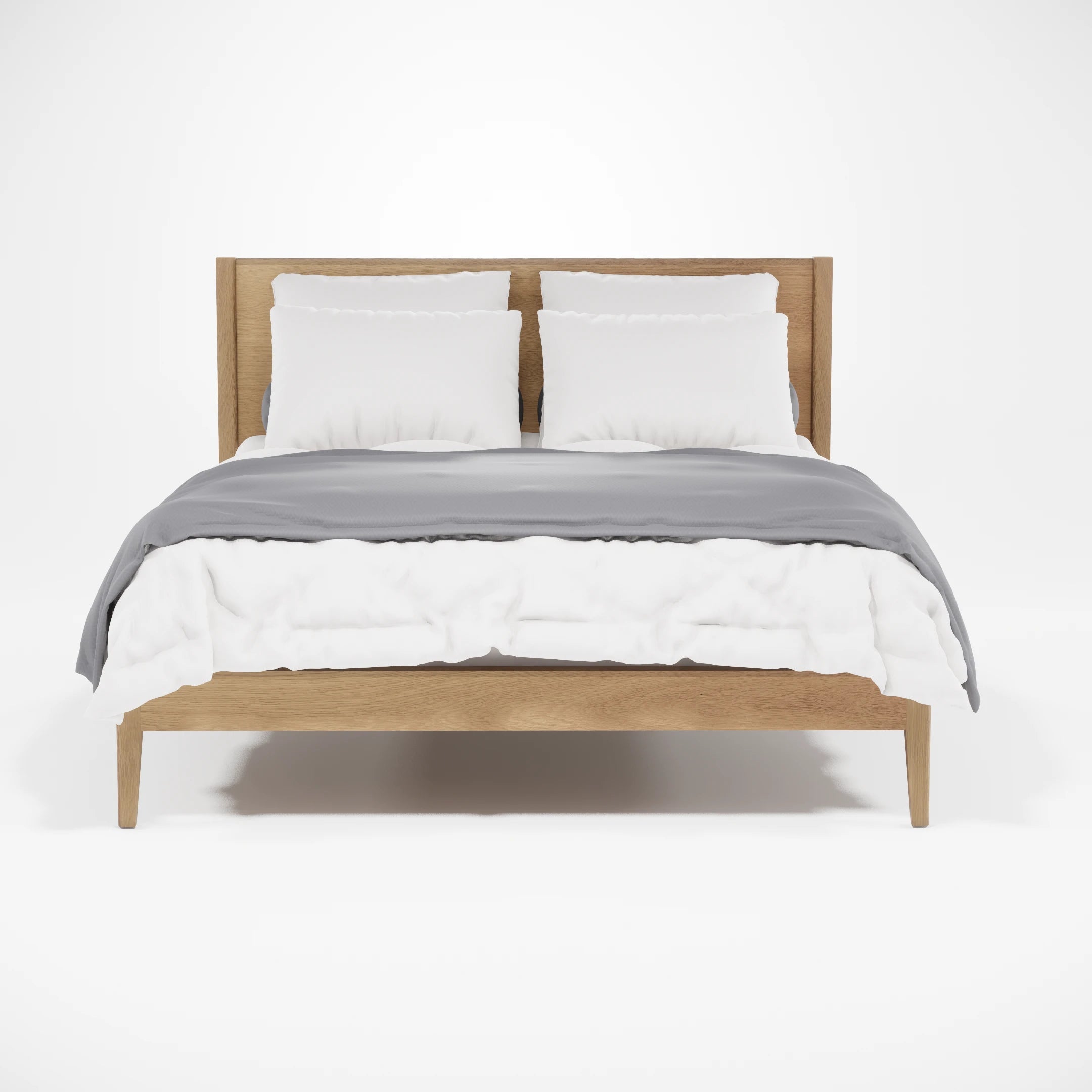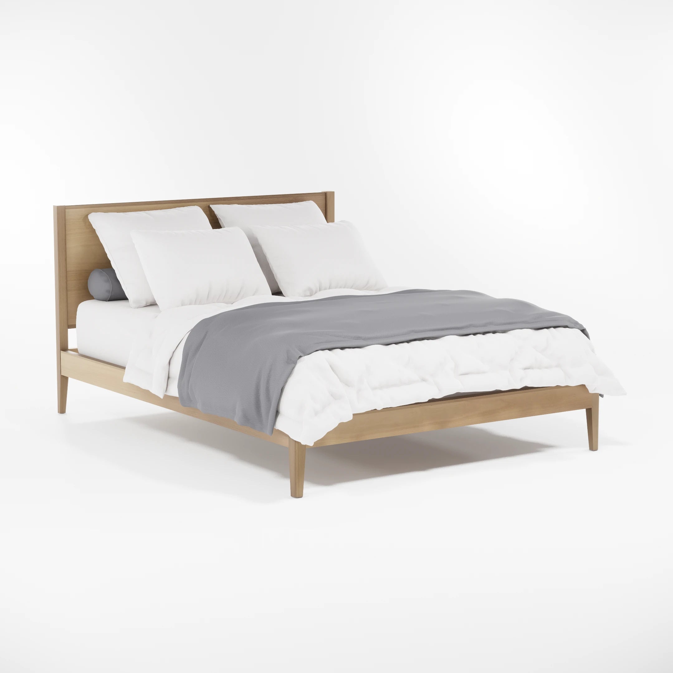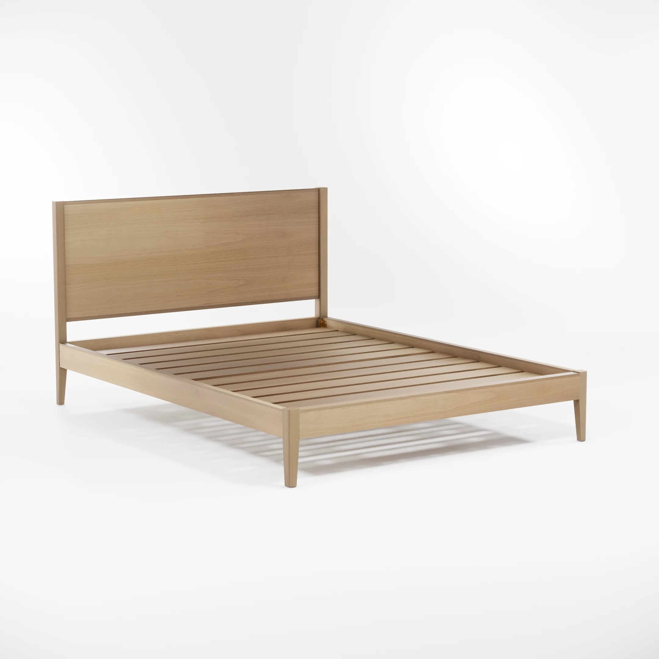 The low-profile frame and refined headboard offer a sleek, modern aesthetic while maintaining a natural, inviting feel. With its effortless balance of form and function, the Nodin-24 Bed is designed to create a serene, uncluttered atmosphere, making it a beautiful centerpiece for any bedroom.