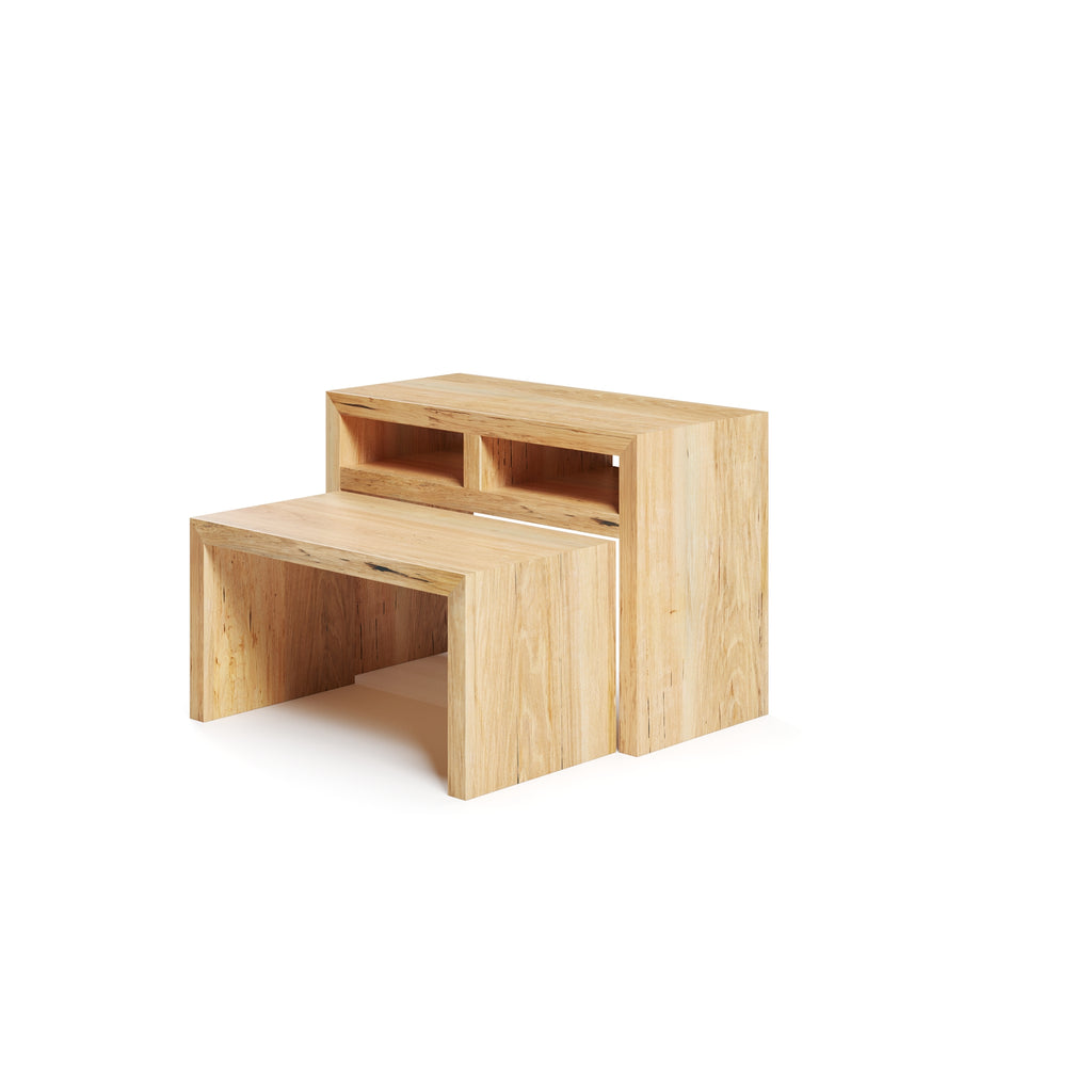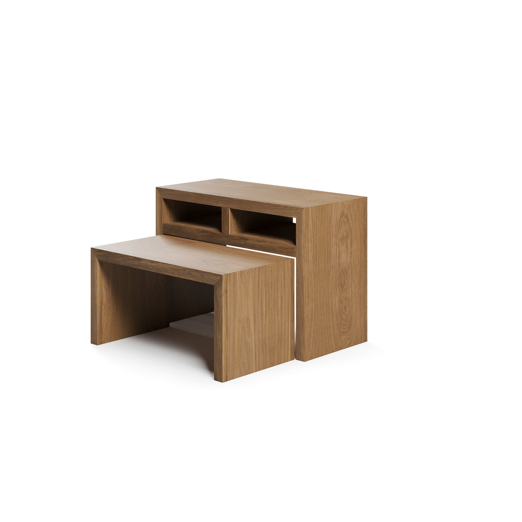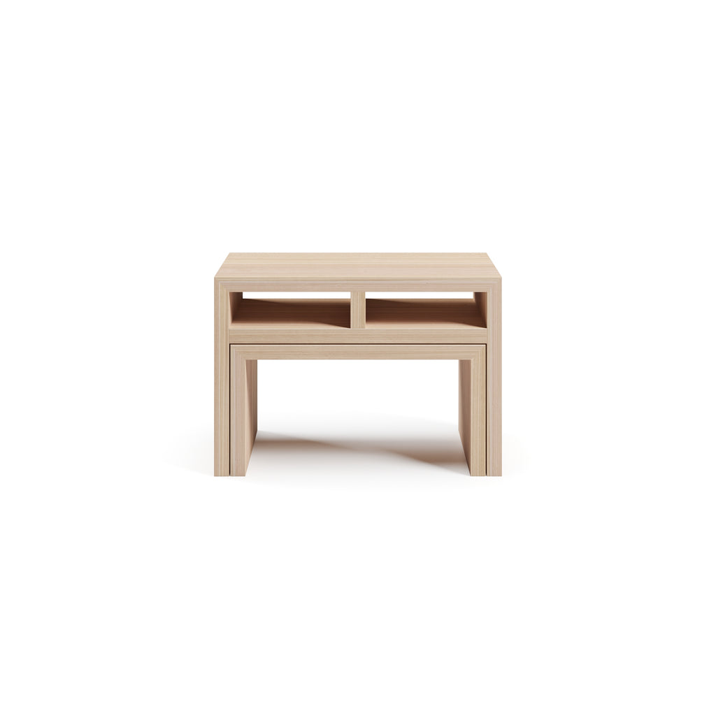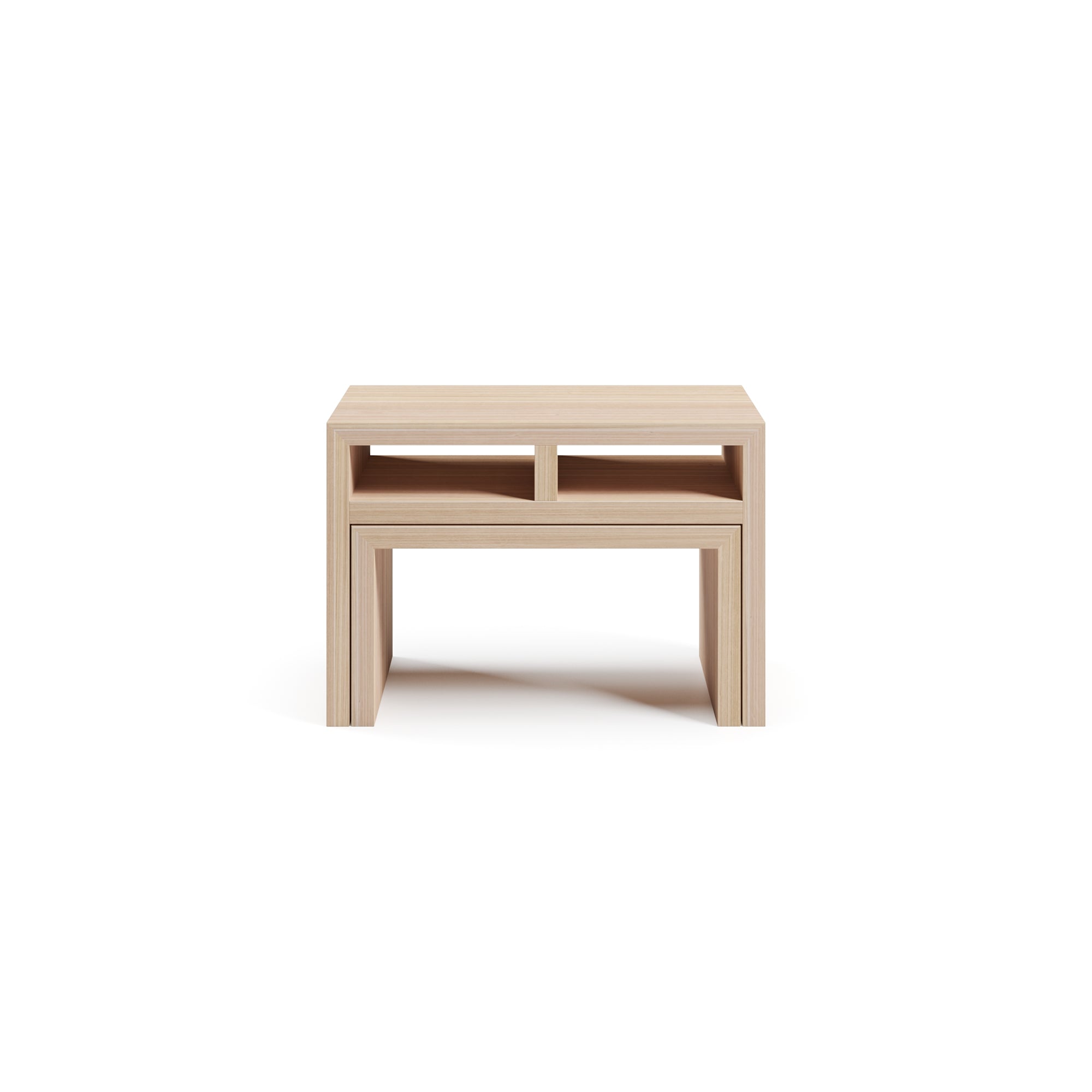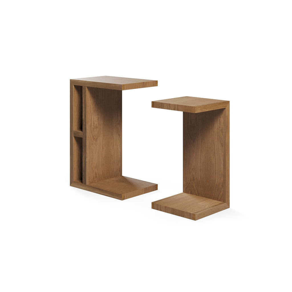 The Noni Nesting Table was designed for small living spaces providing a versatile functionality. The design can be slid away into itself to reduce its overall footprint or pulled out to be used as a small side table alongside a couch.