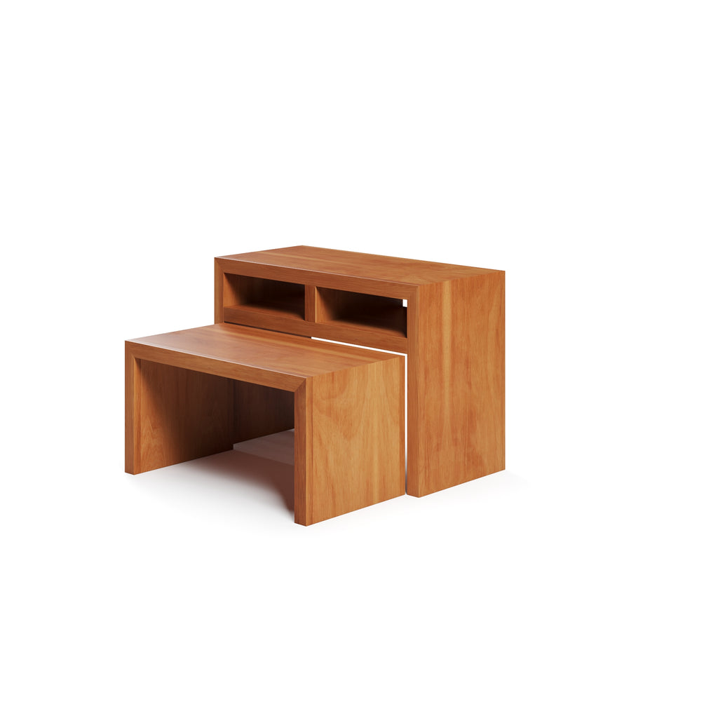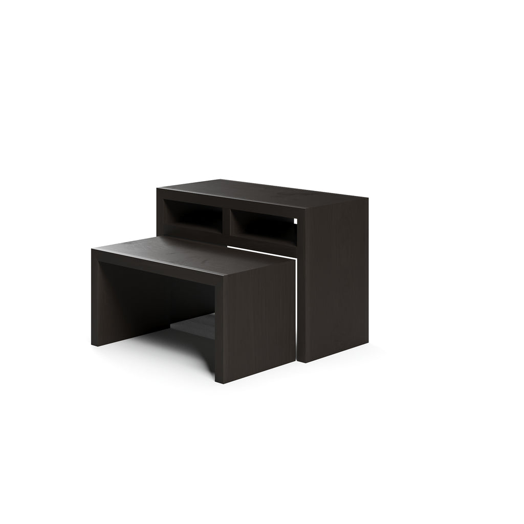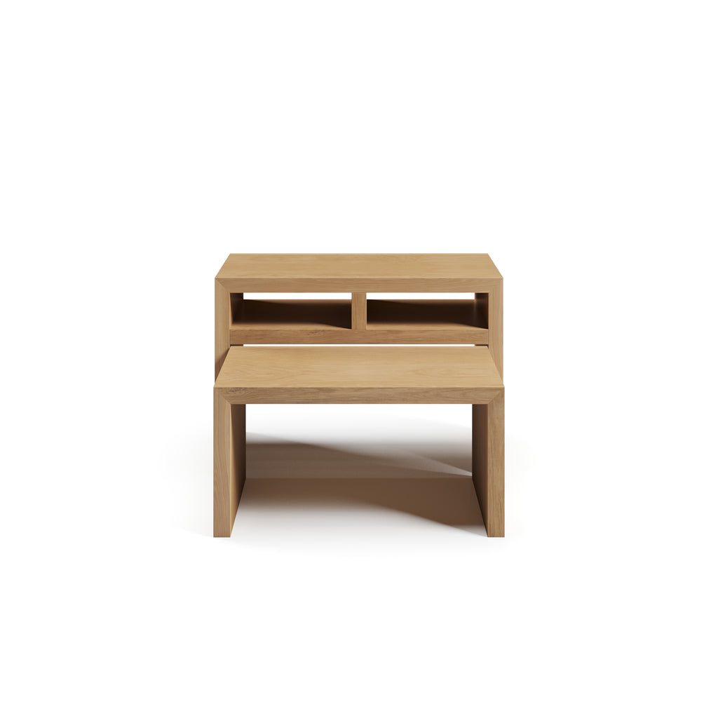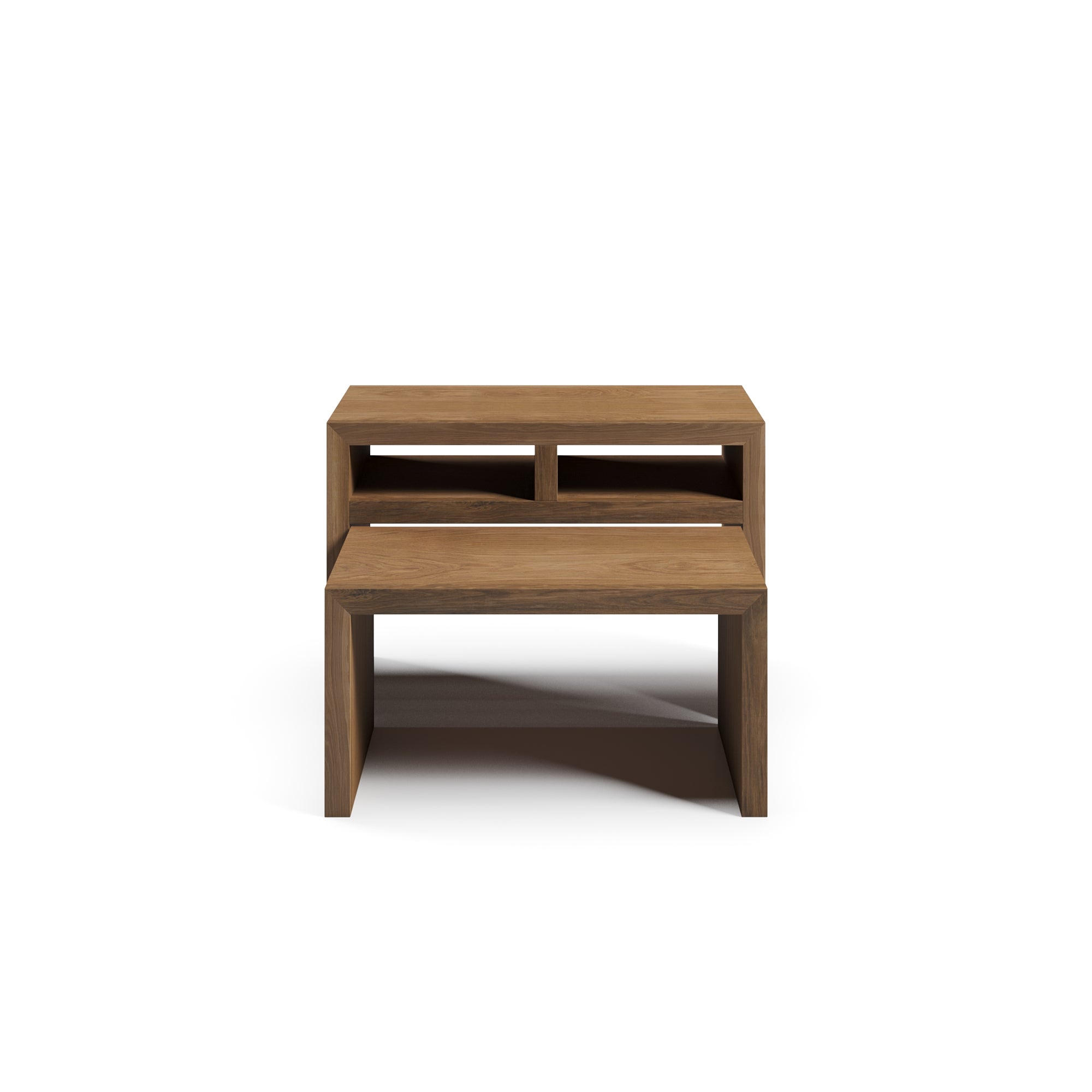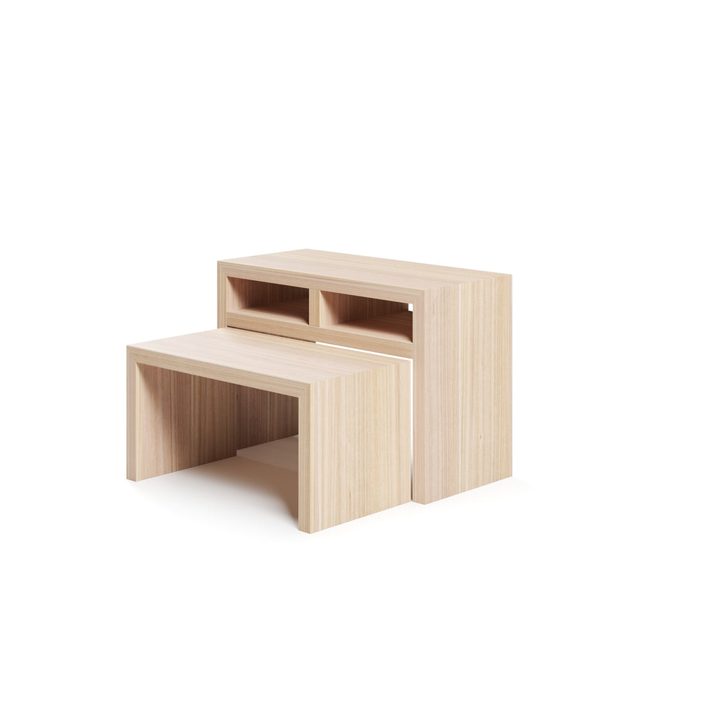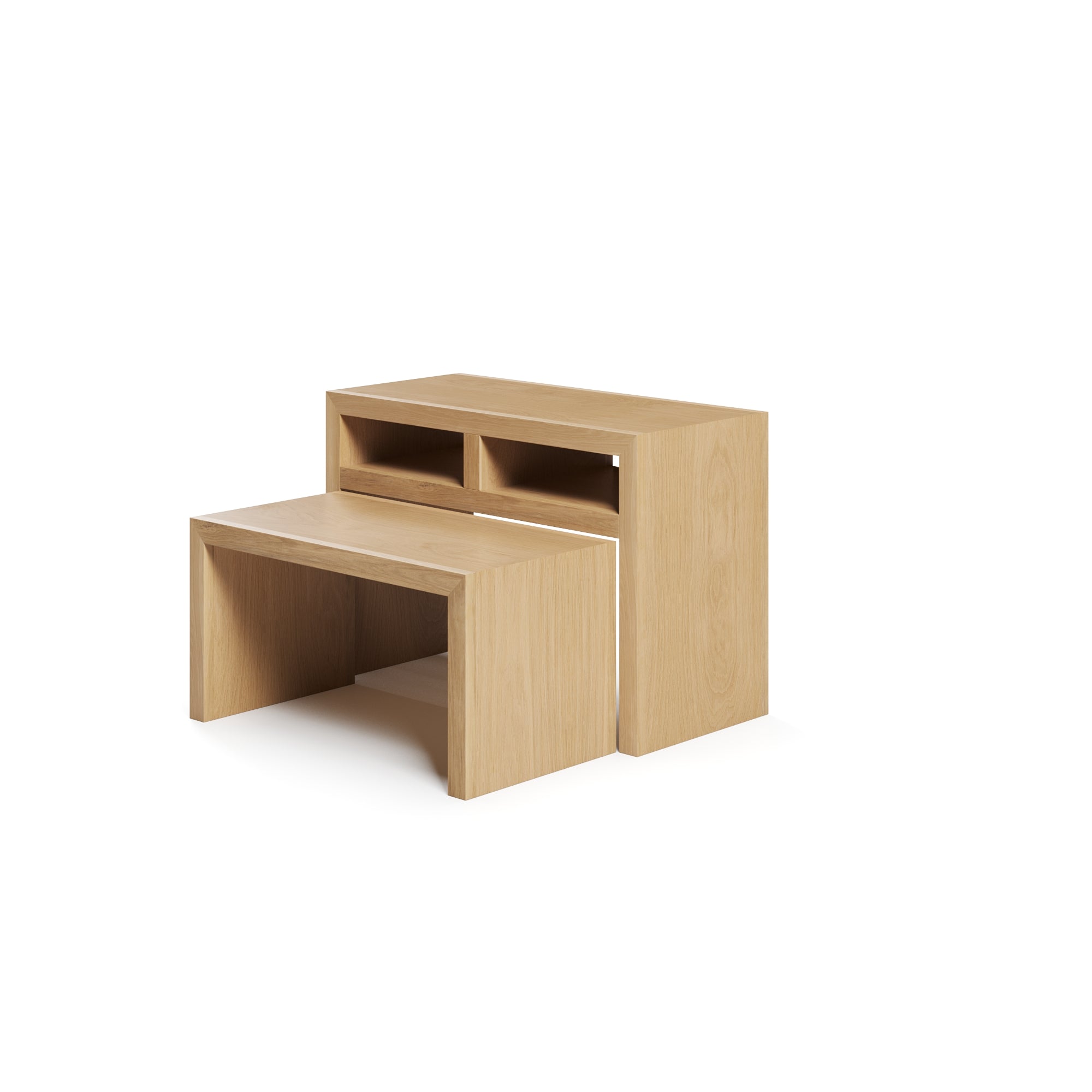 The Noni Nesting Table was designed for small living spaces providing a versatile functionality. The design can be slid away into itself to reduce its overall footprint or pulled out to be used as a small side table alongside a couch.