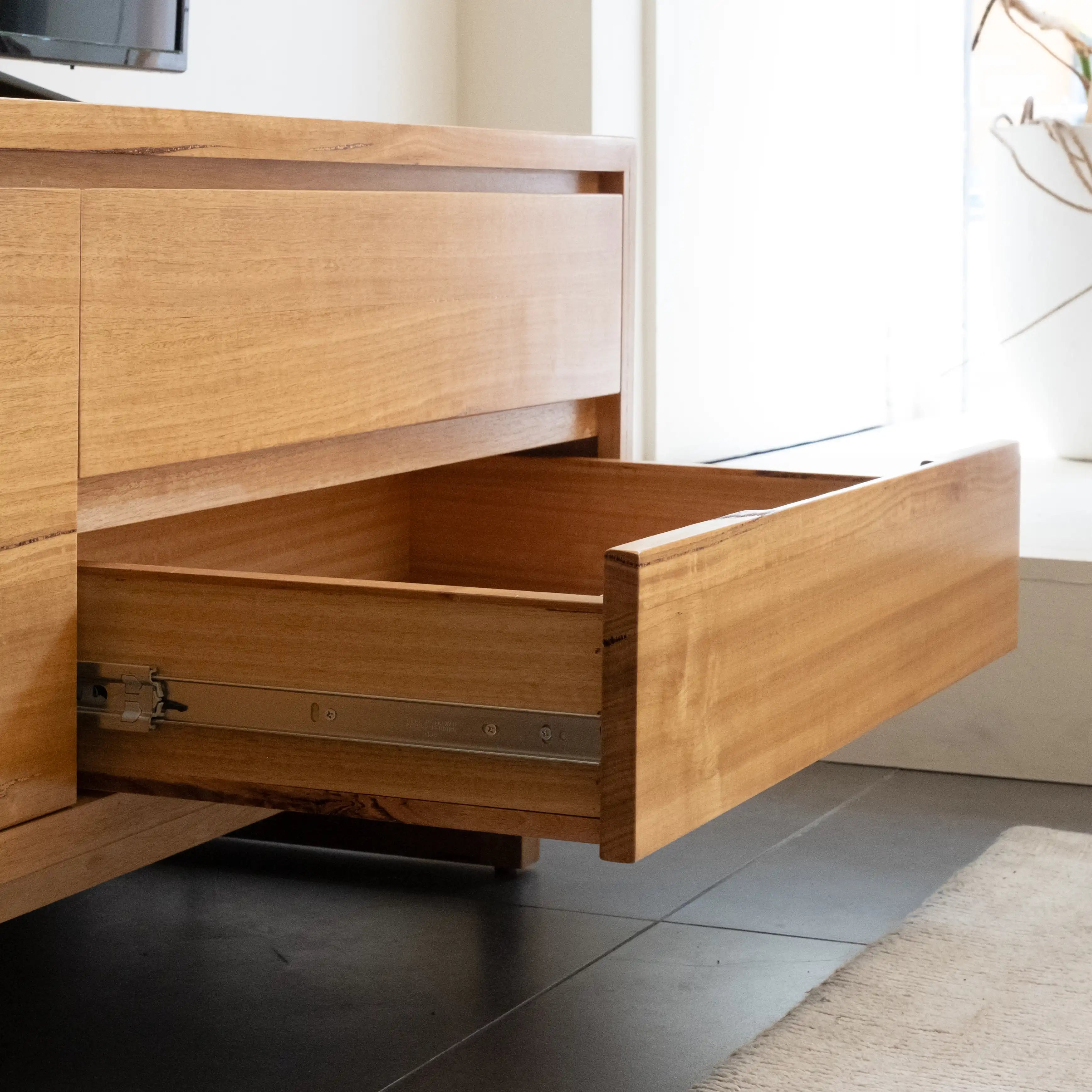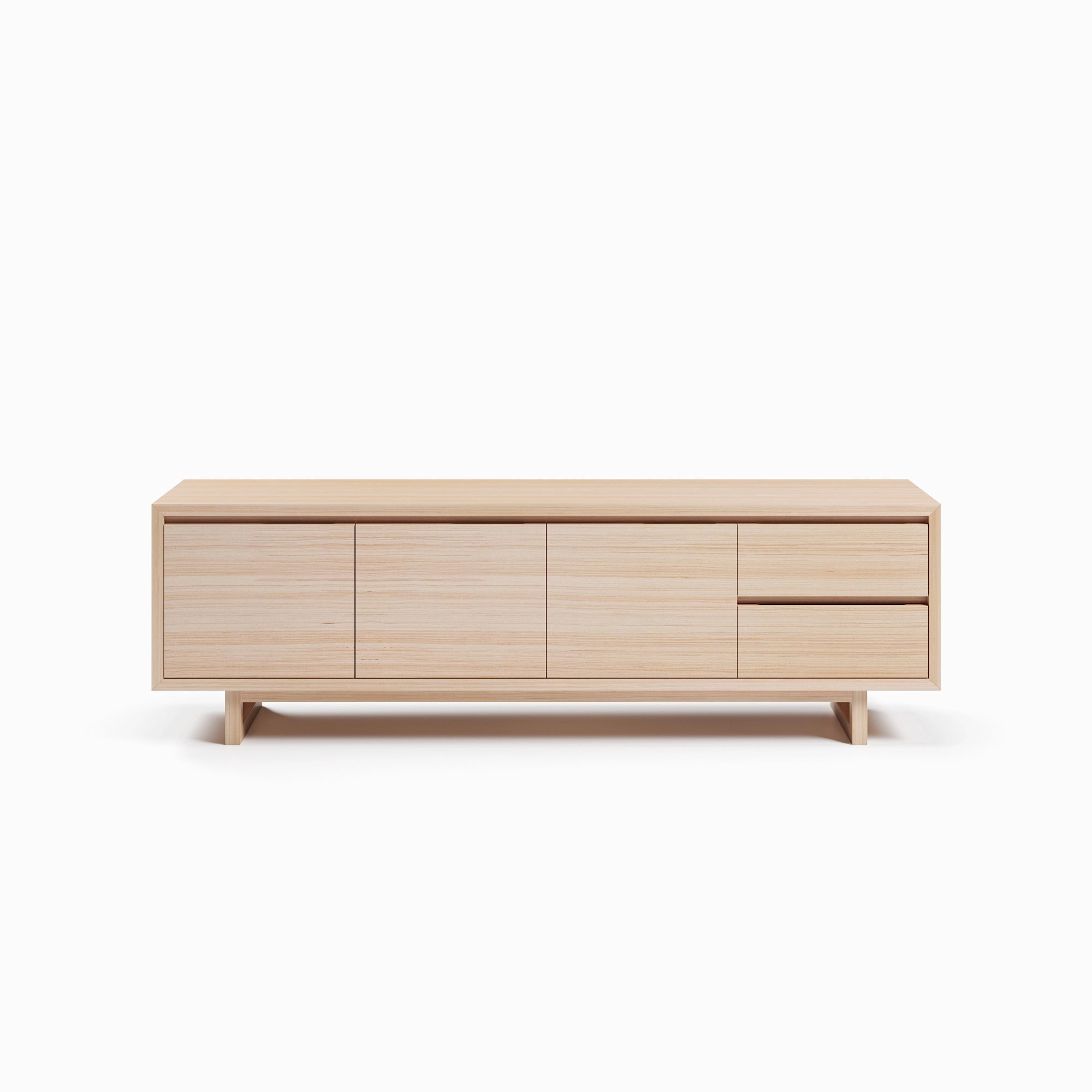 The Orimba Entertainment Unit - S proudly showcases its sleek design, with shadowline openings for a minimalistic touch. Its Japanese-inspired aesthetic is further reinforced by a horizontal grain pattern for an even, consistent finish made and built to last.
